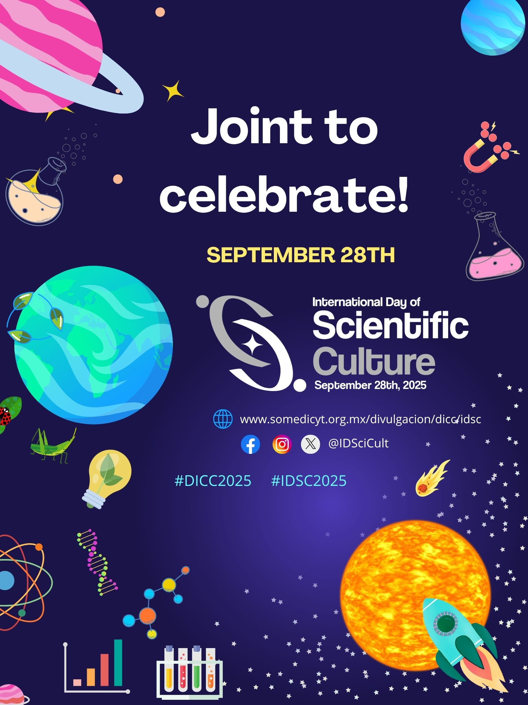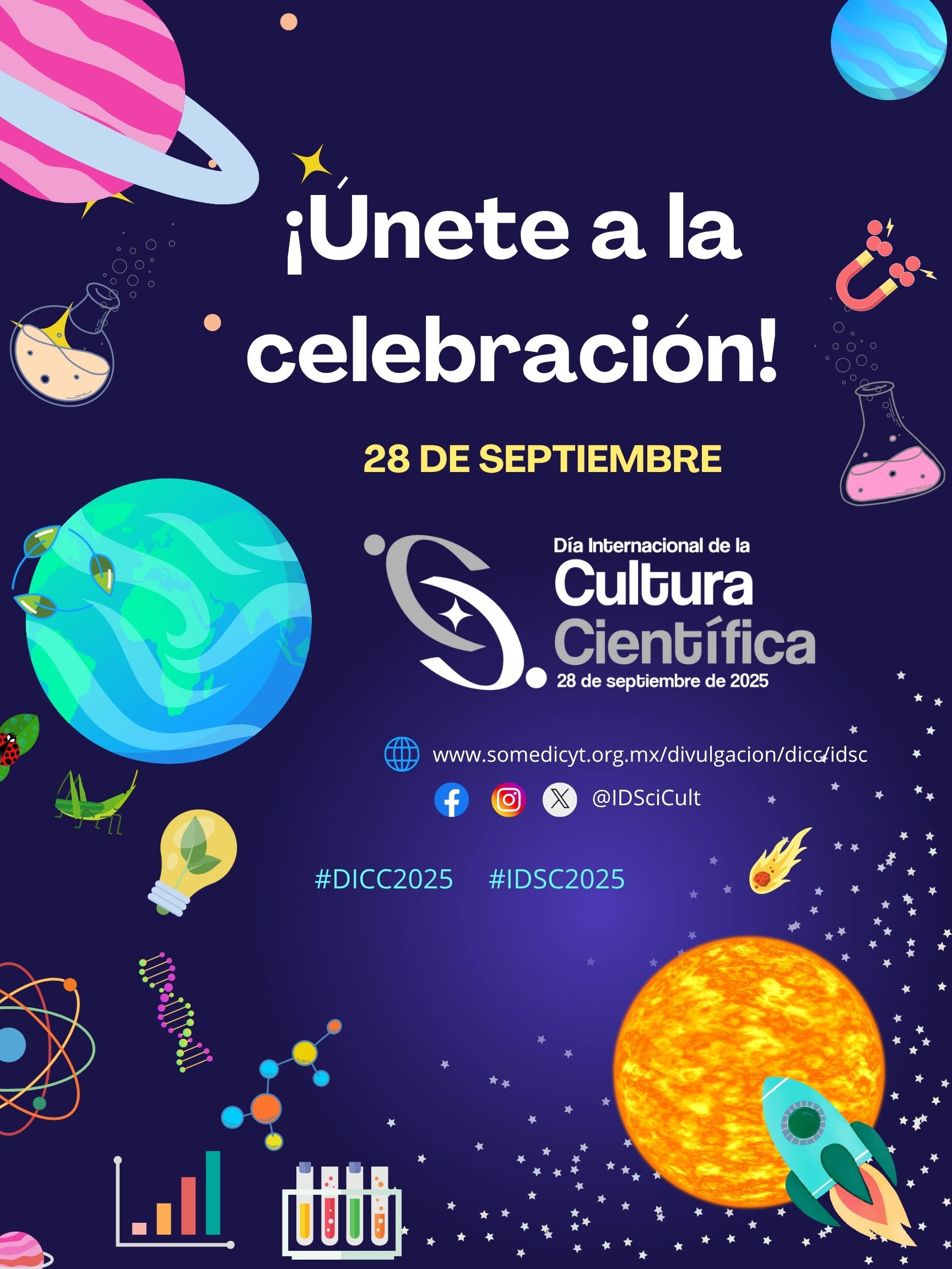 En esta sección se podrá consultar la agenda de actividades que se realizarán el 28 de septiembre, las instituciones de varios países que se han unido para celebrar el Día Internacional de la Cultura Científica.